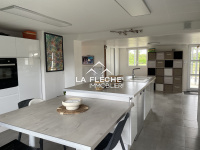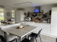 Pavillon composé en rez-de-chaussée d'un salon avec poêle à bois, une cuisine aménagée équipée, une salle à manger, une salle de jeux, une cave, une buanderie et un wc. A l'étage un couloir desservant 5 chambres, dont deux avec dressing, une salle d'eau, un wc. Terrasse, balcon, hangar et dépendances. Terrain clos avec puits. Assainissement individuel conforme. Les informations sur les risques auxquels ce bien est exposé sont disponibles sur le site Géorisques : www.georisques.gouv.fr Zone soumise à une obligation légale de débroussaillement. Les informations sur les risques auxquels ce bien est exposé sont disponibles sur le site Géorisques
